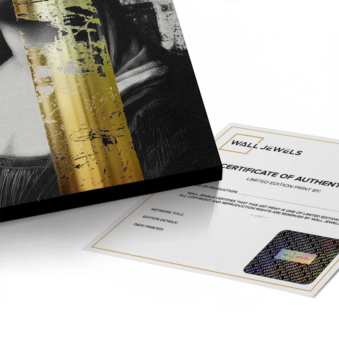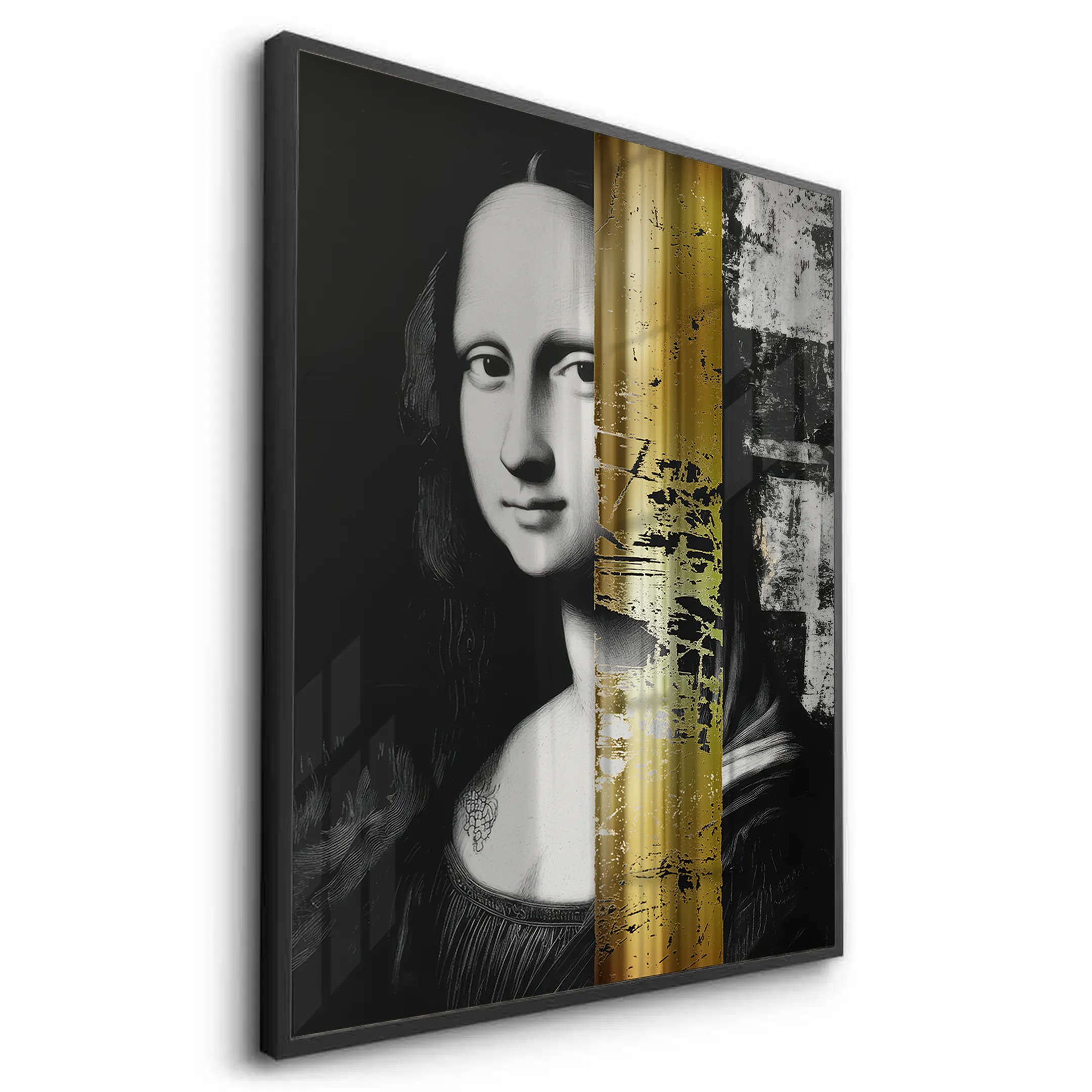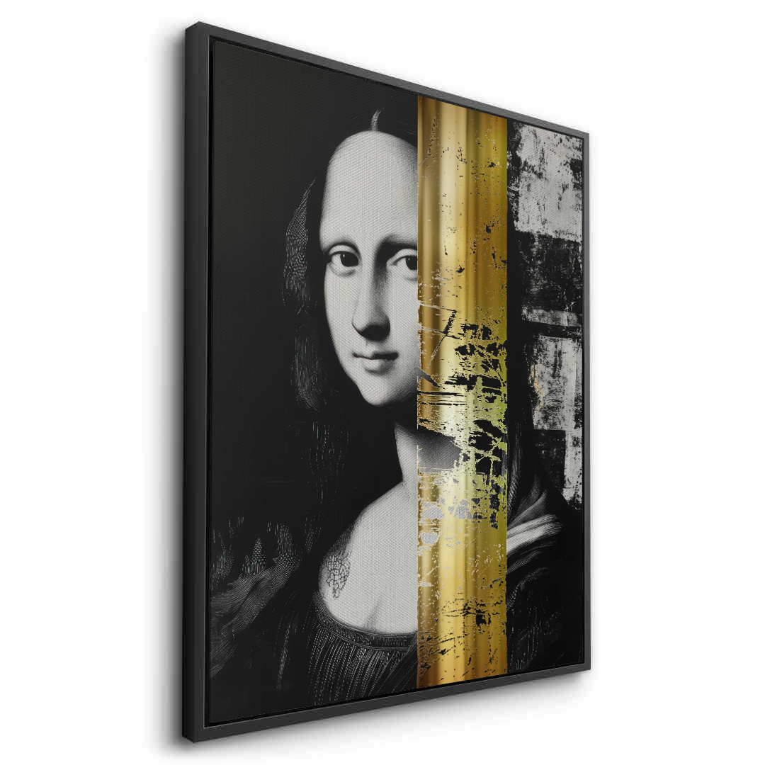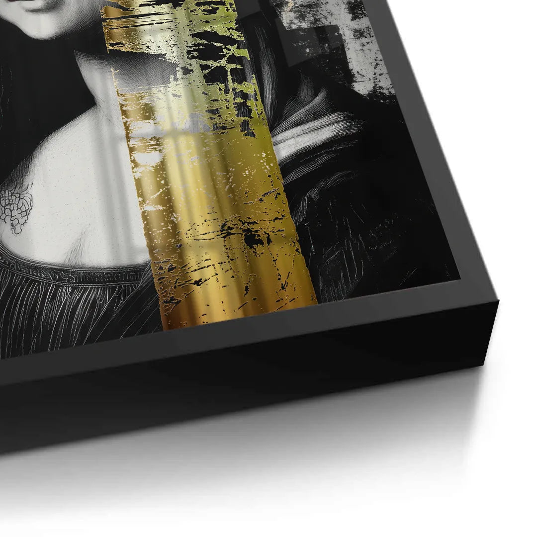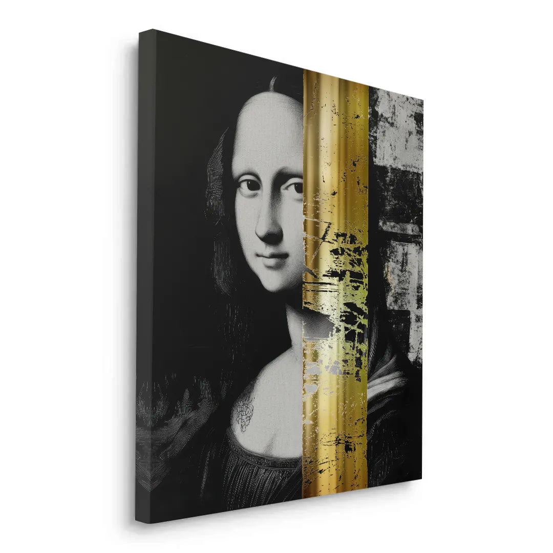 A modern take on the iconic portrait, this black-and-white Monalisa artwork features elegant gold foiling that adds subtle luxury. Perfect for chic interiors, gallery walls, or artistic corners—designed for those who admire timeless beauty with a twist.