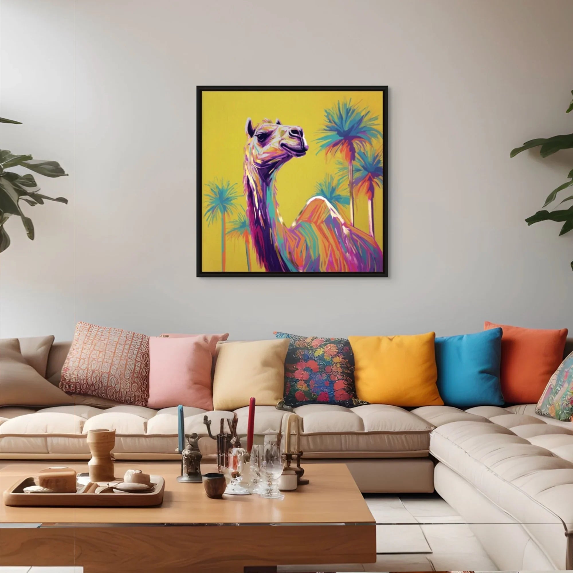 A vibrant explosion of personality, Cameleon transforms the classic desert camel into a shape-shifting pop icon. With expressive brushstrokes and subtle gold foiling, it’s perfect for creative studios, playful interiors, or modern statement walls.