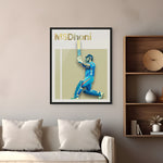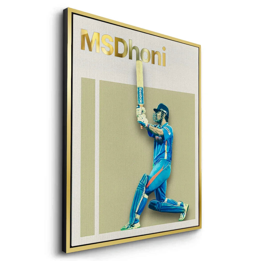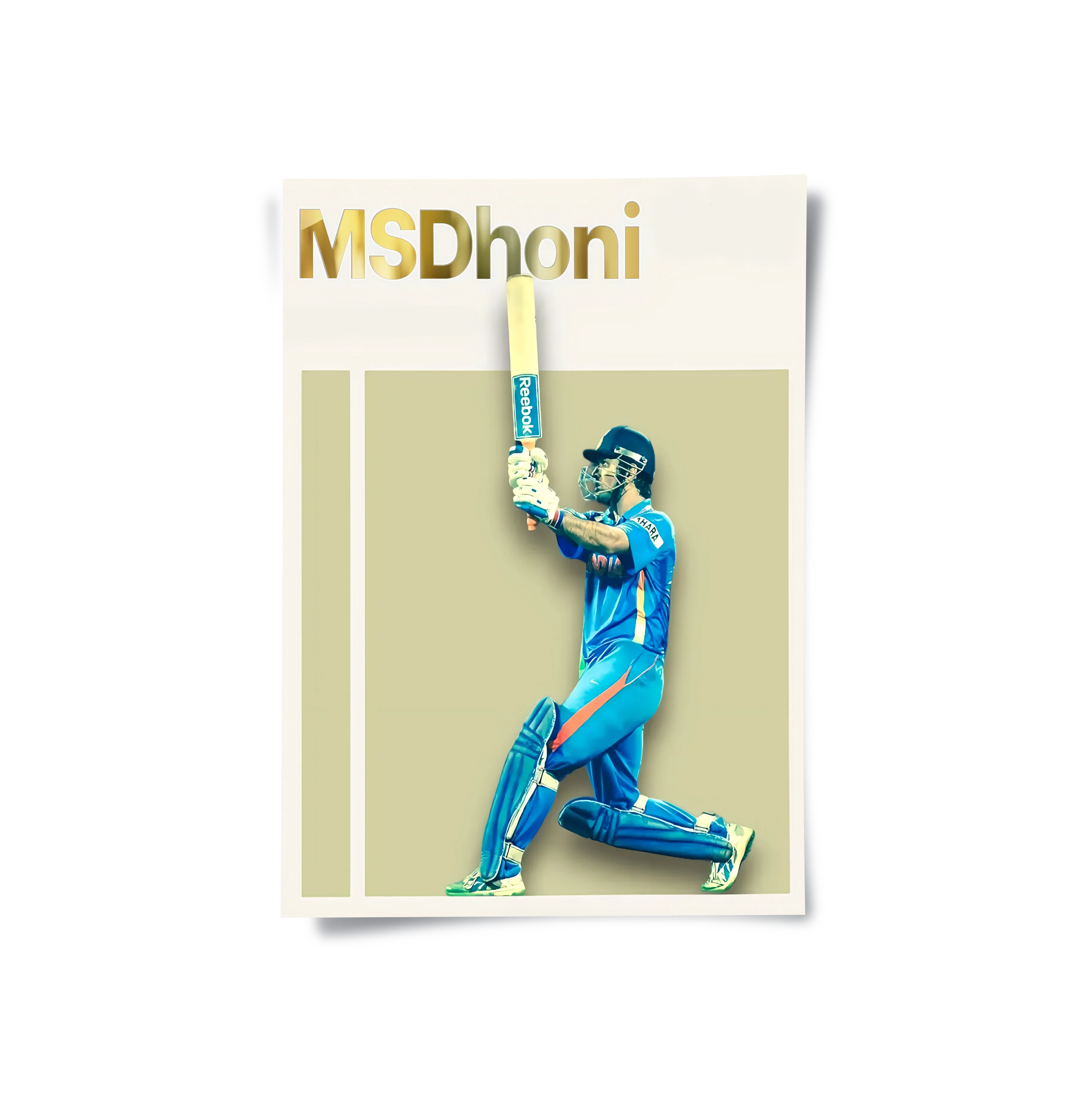MS Dhoni finishes with signature calm and power, perfectly embodying his legacy as India’s most composed captain. Enhanced with gold foiling, this artwork belongs on the walls of fans who value leadership under pressure.