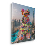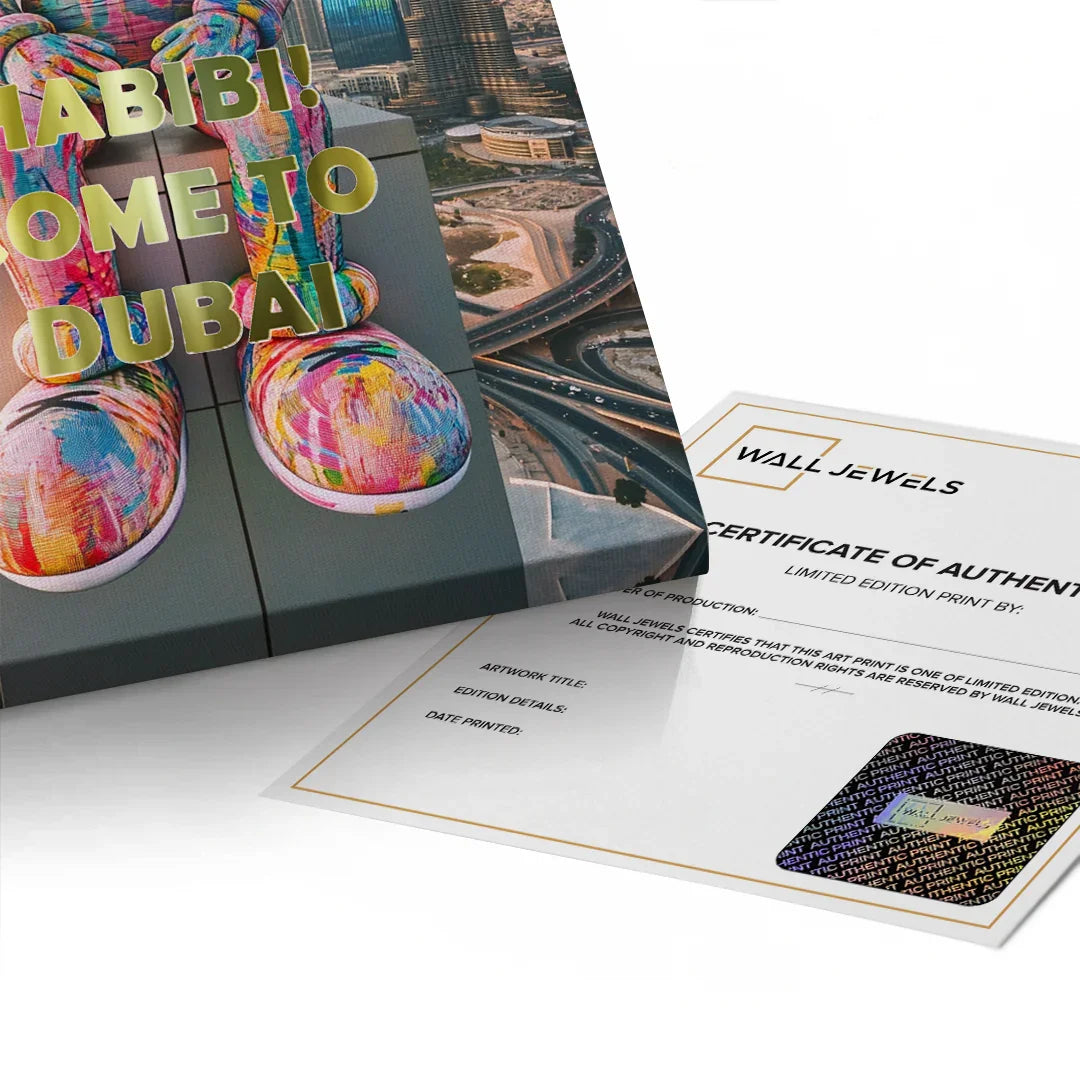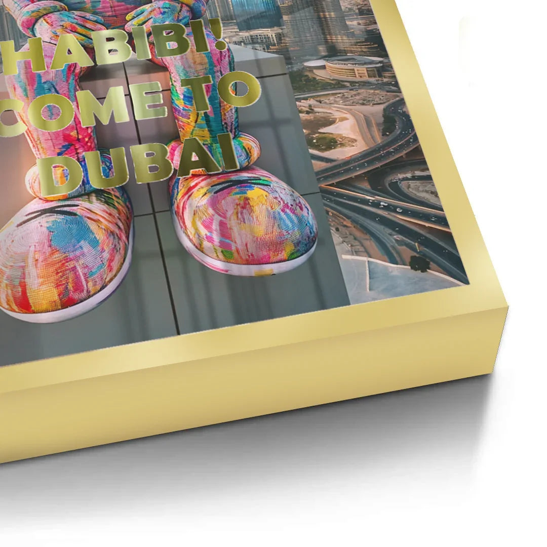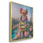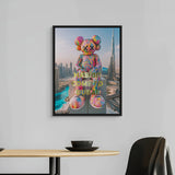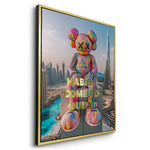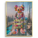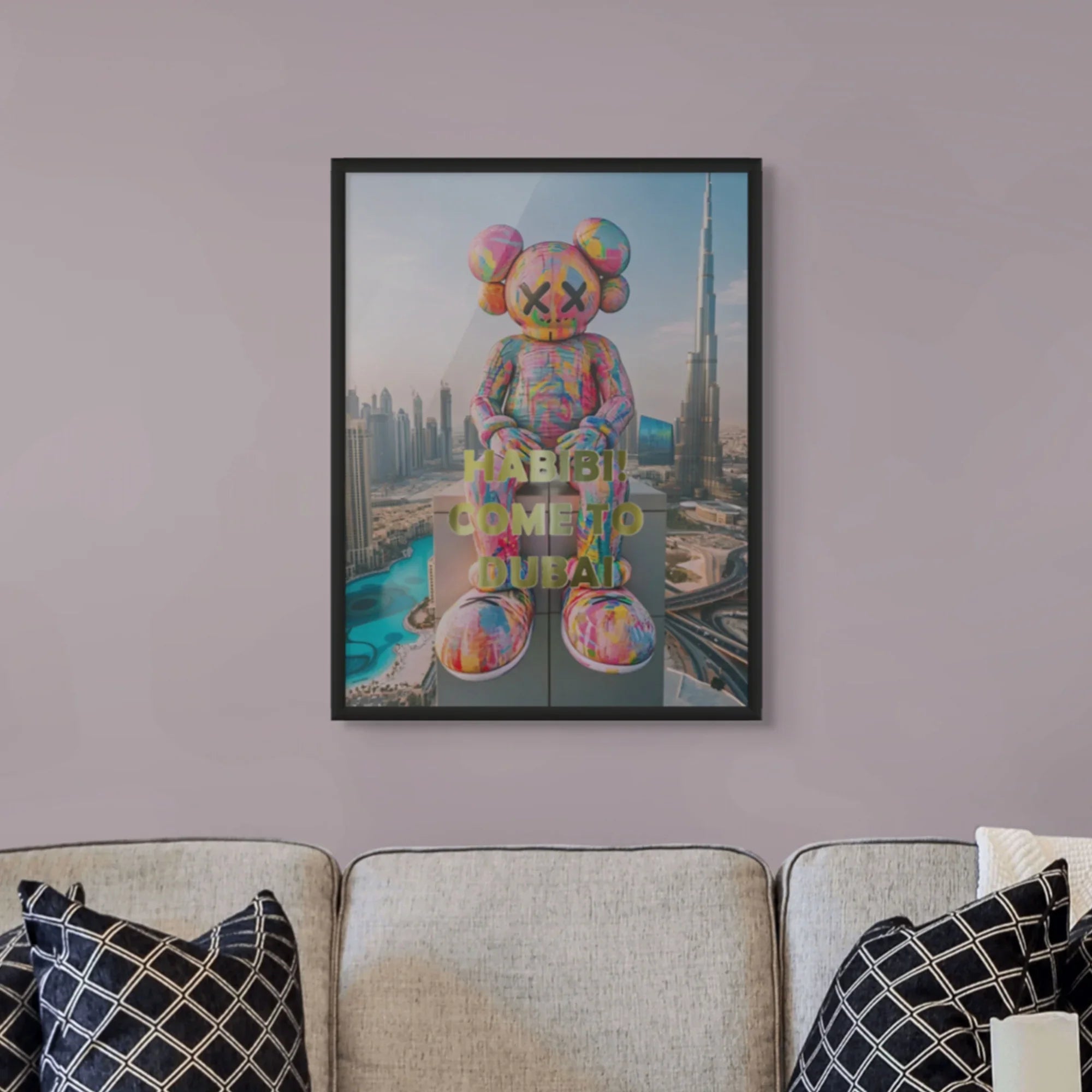KAWS gets the VIP view, perched high above Dubai with Burj Khalifa in the backdrop. Bursting with multicolor energy and gold accents, this artwork is for collectors chasing skyline statements and bold, urban-inspired centerpiece moments.