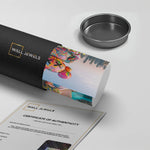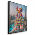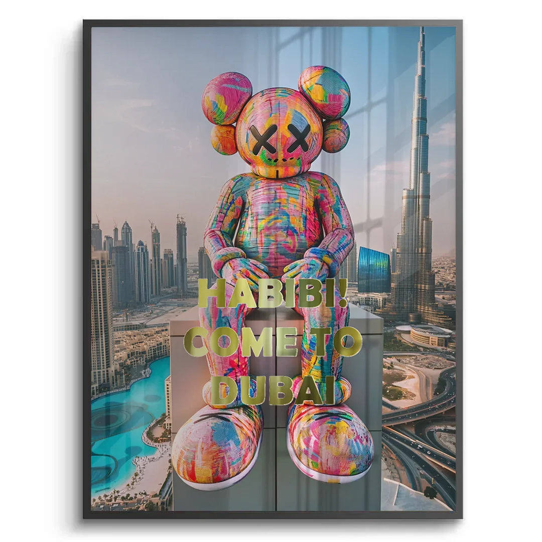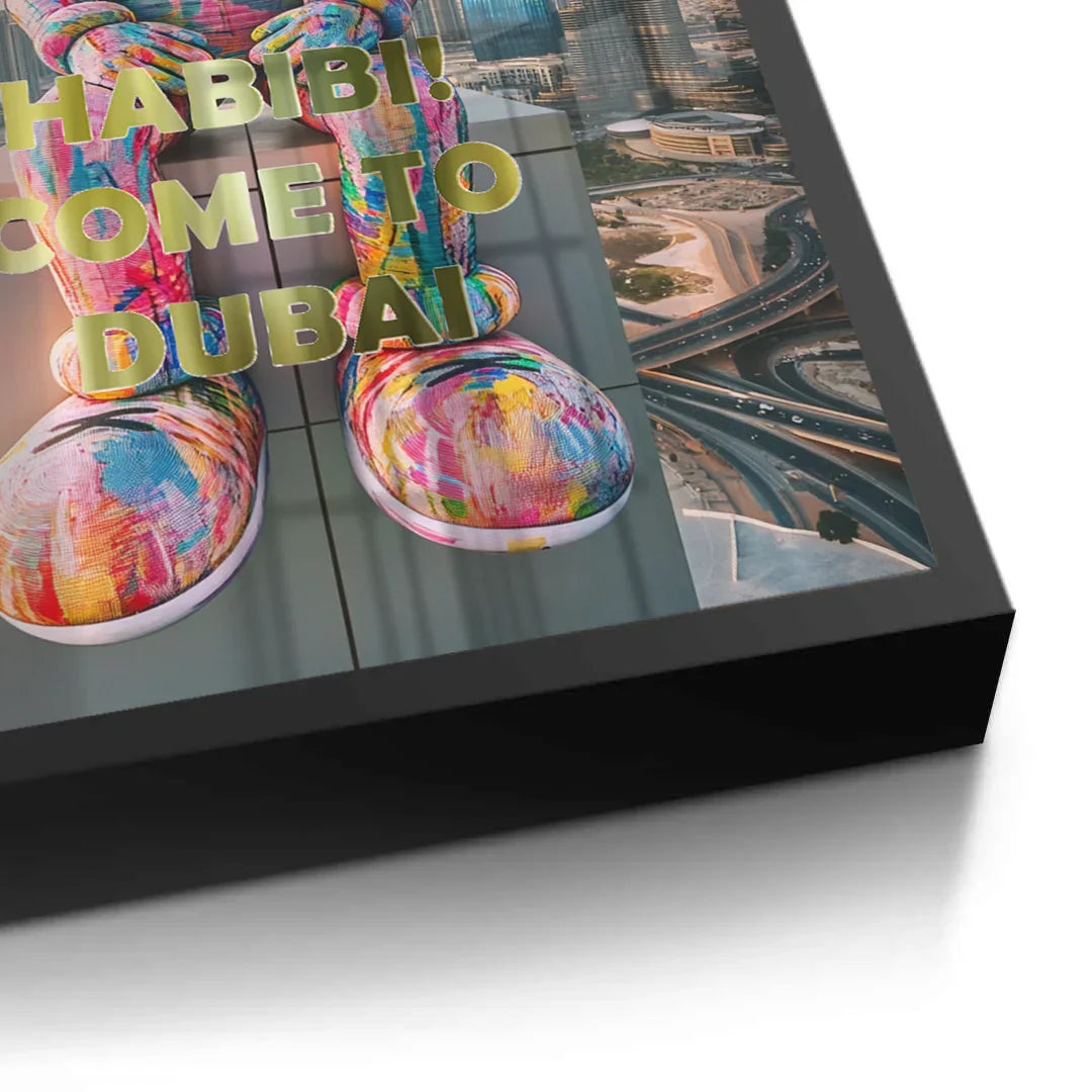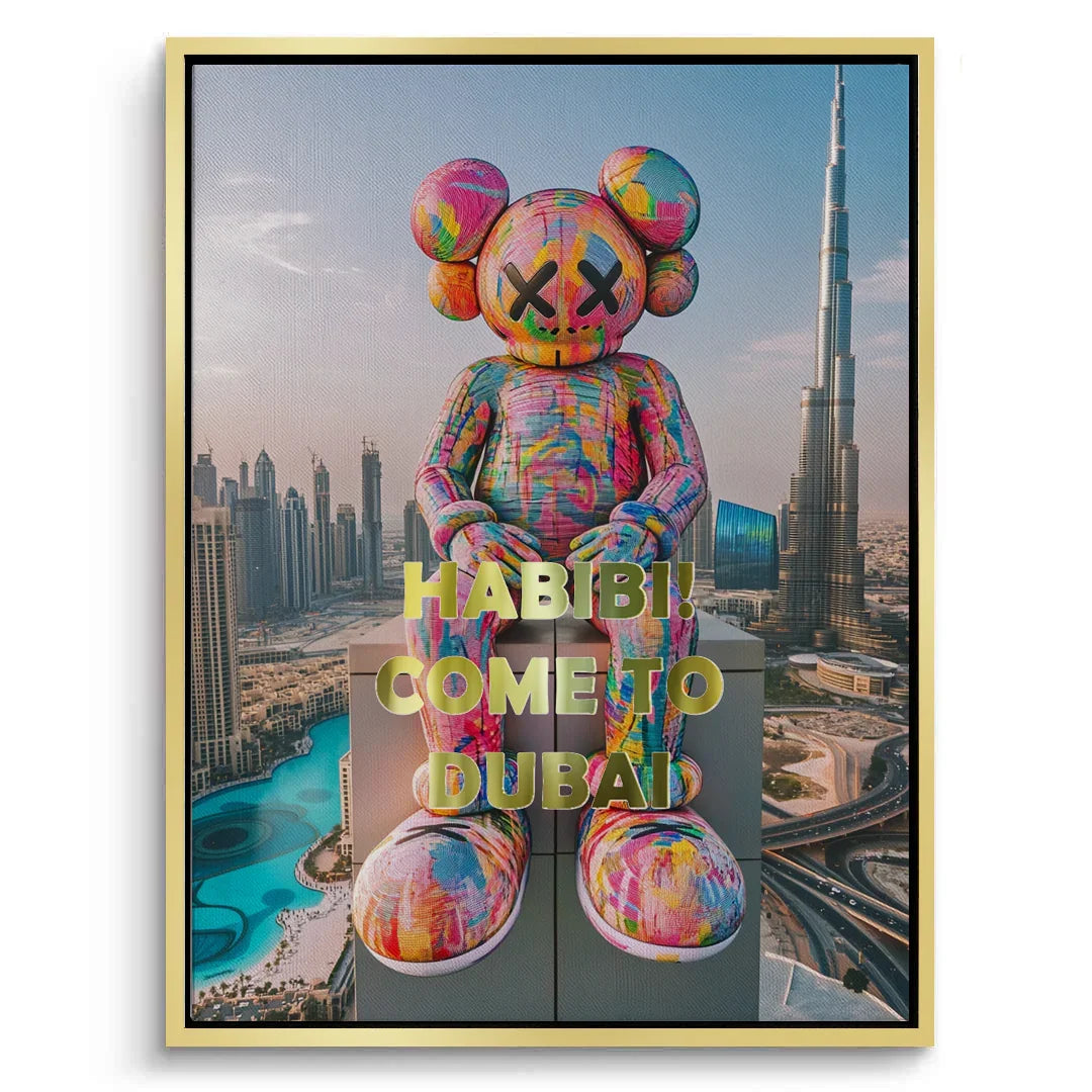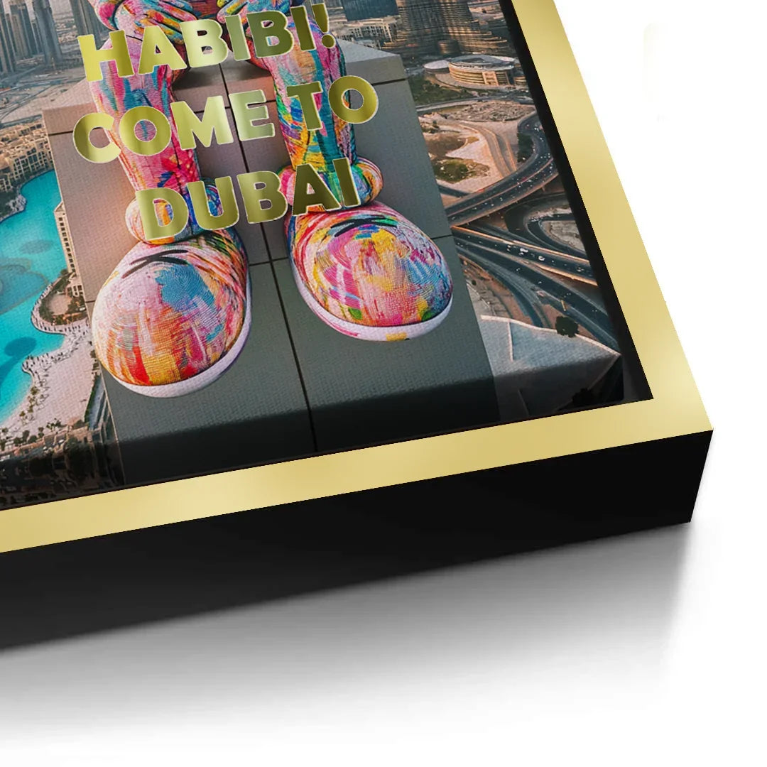 KAWS gets the VIP view, perched high above Dubai with Burj Khalifa in the backdrop. Bursting with multicolor energy and gold accents, this artwork is for collectors chasing skyline statements and bold, urban-inspired centerpiece moments.