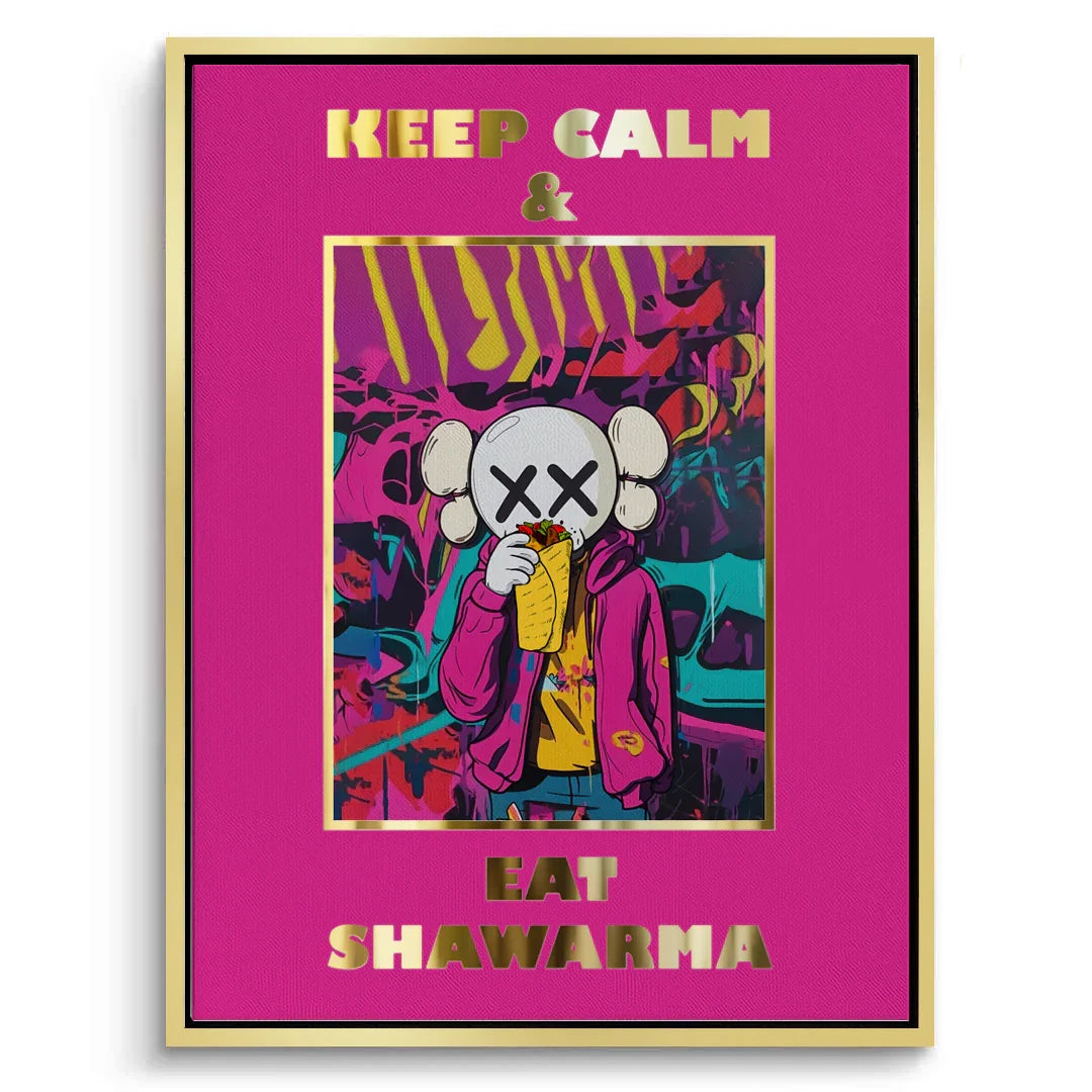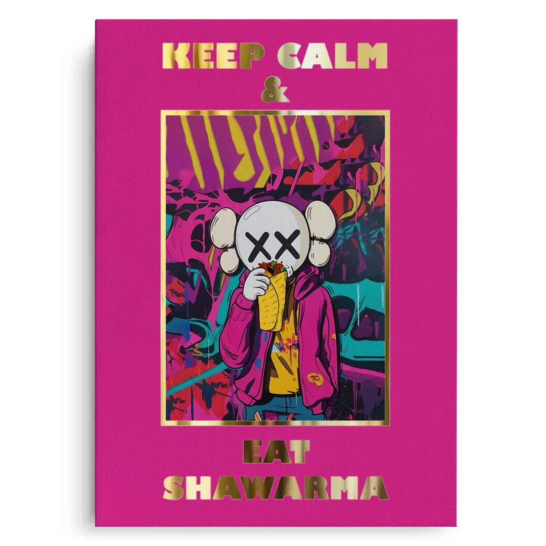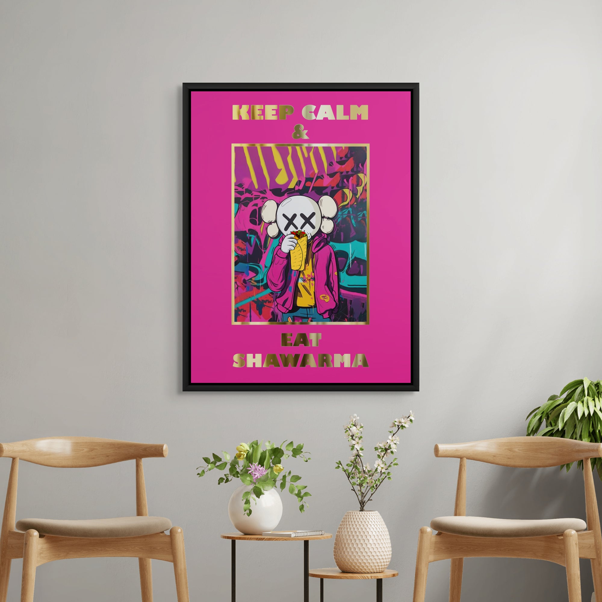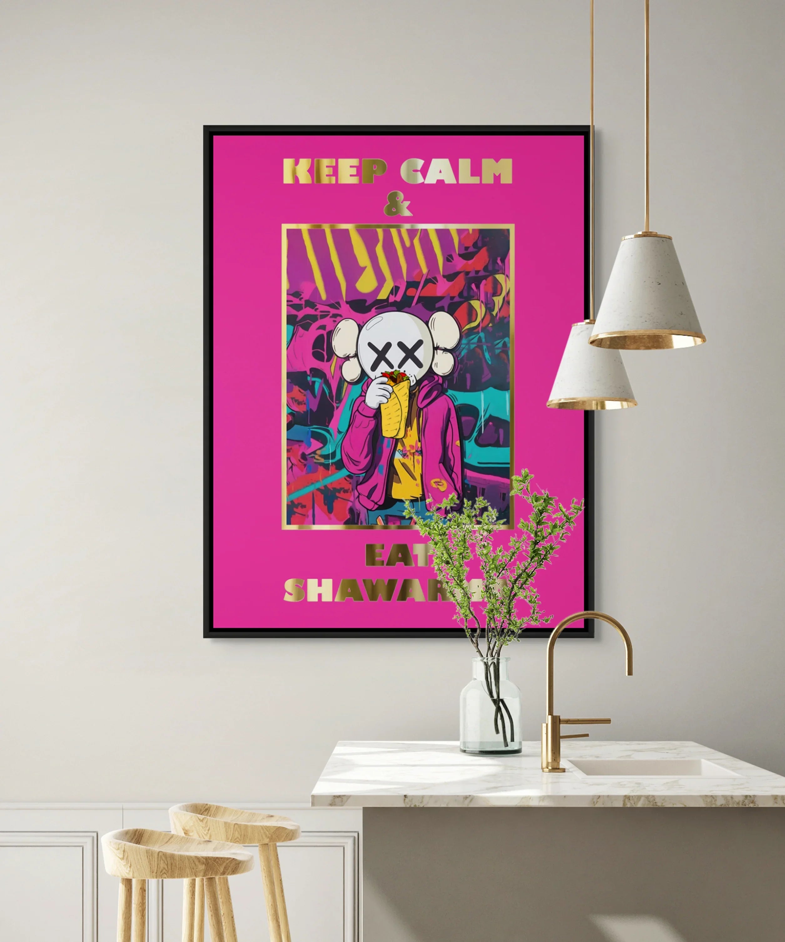 Get ready to level up your space with this KAWS-inspired wall art! Featuring KAWS munching on shawarma with bold gold leaf lettering, it's the ultimate statement piece for shawarma lovers in the UAE.