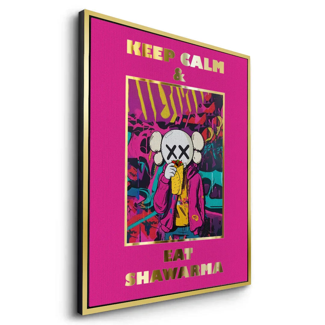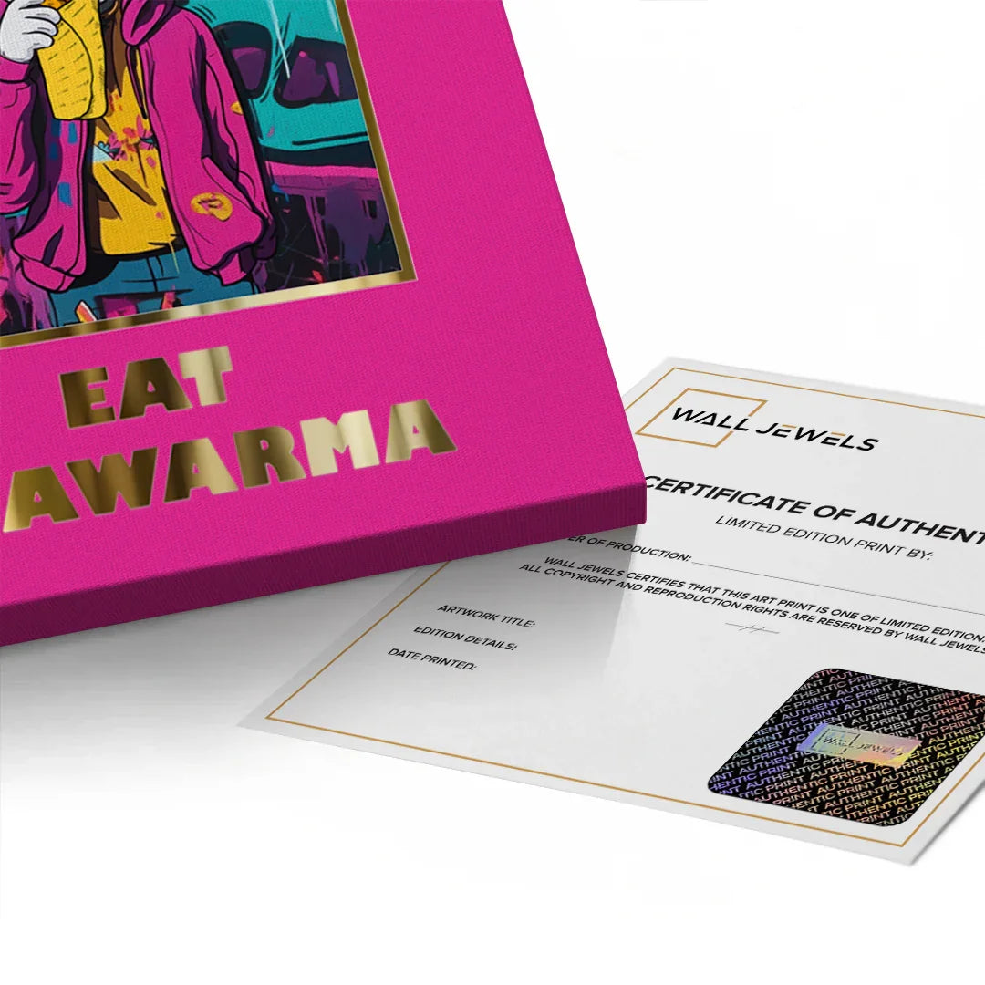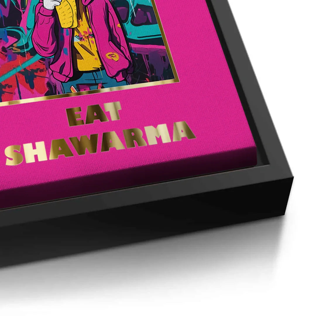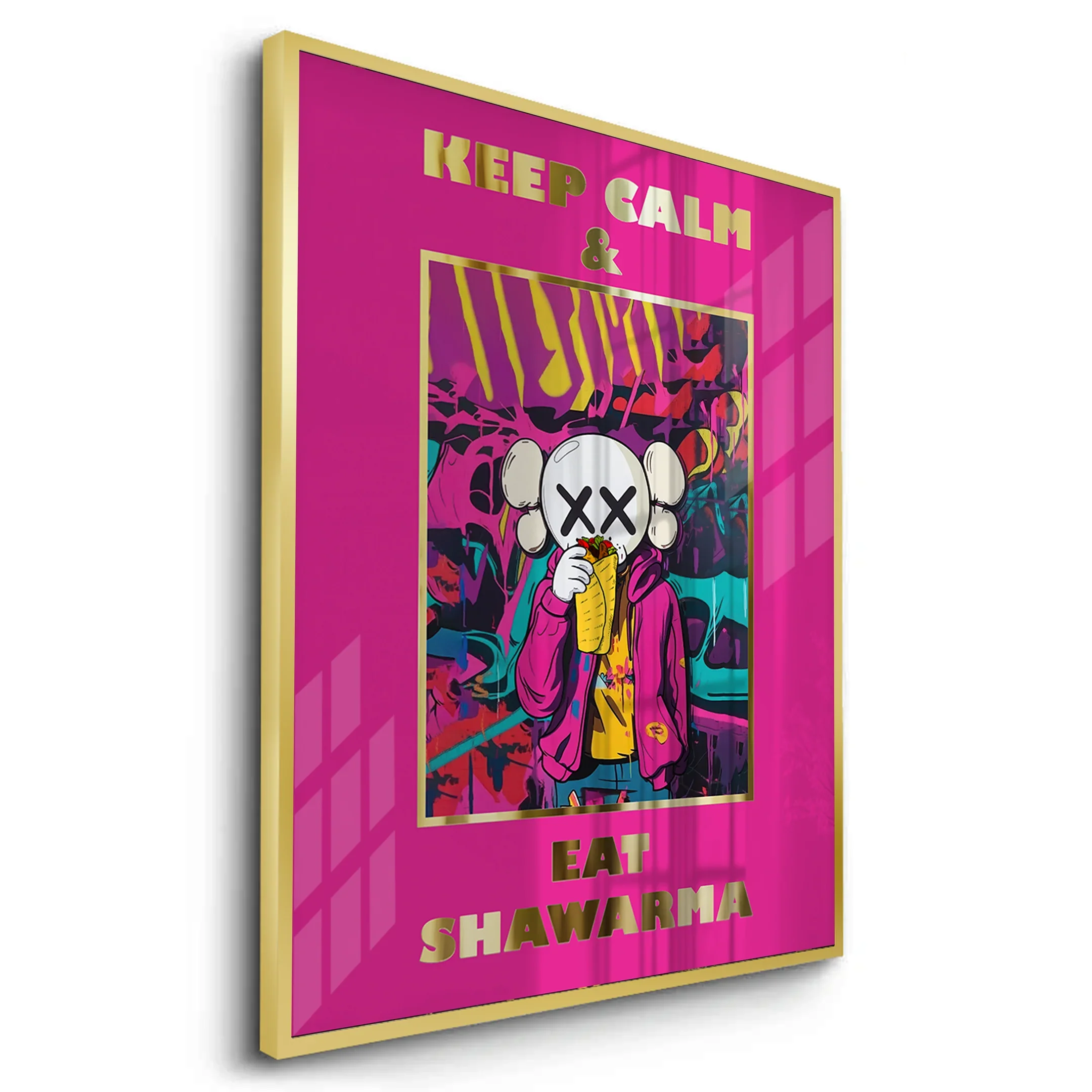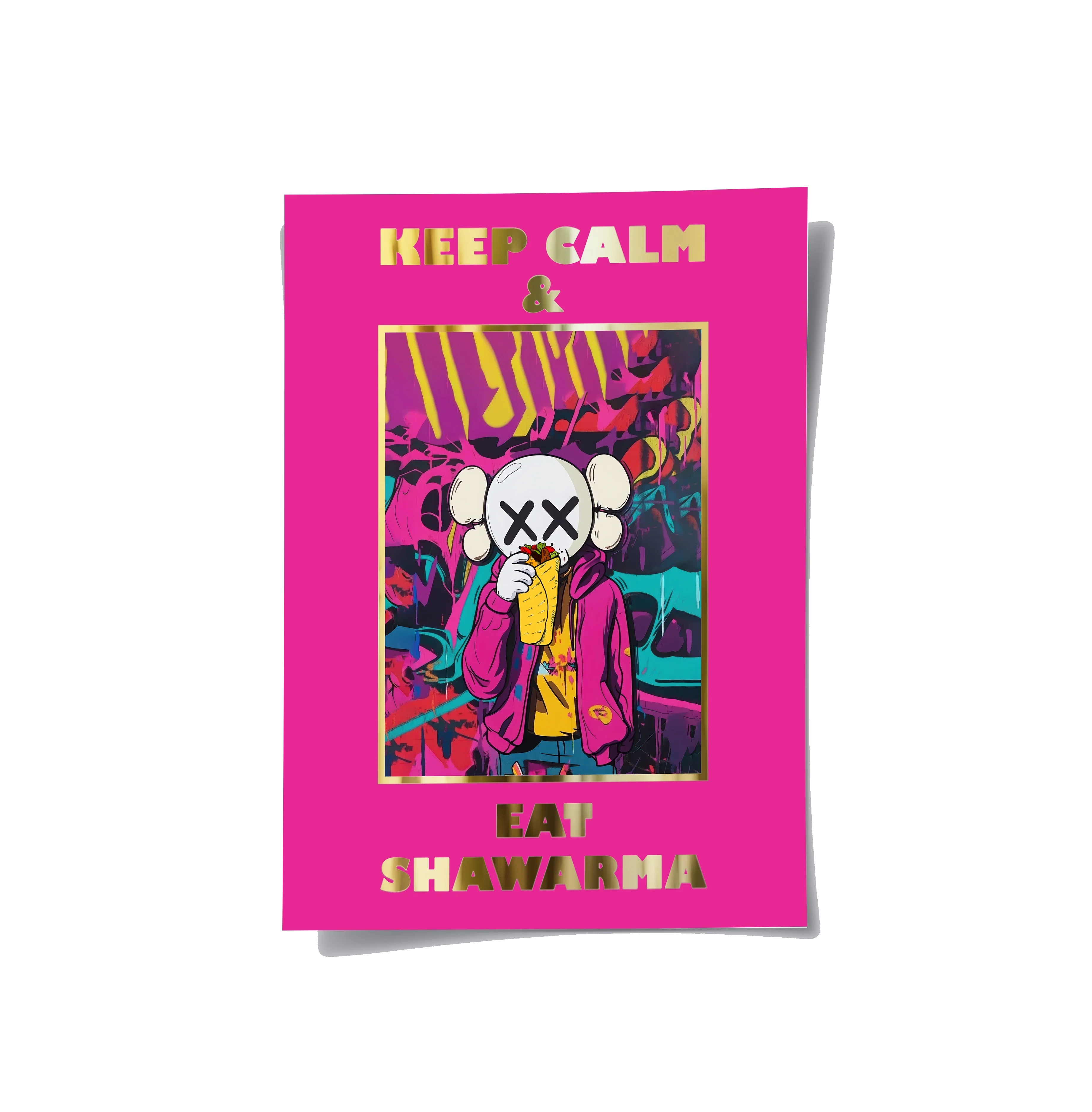 Get ready to level up your space with this KAWS-inspired wall art! Featuring KAWS munching on shawarma with bold gold leaf lettering, it's the ultimate statement piece for shawarma lovers in the UAE.