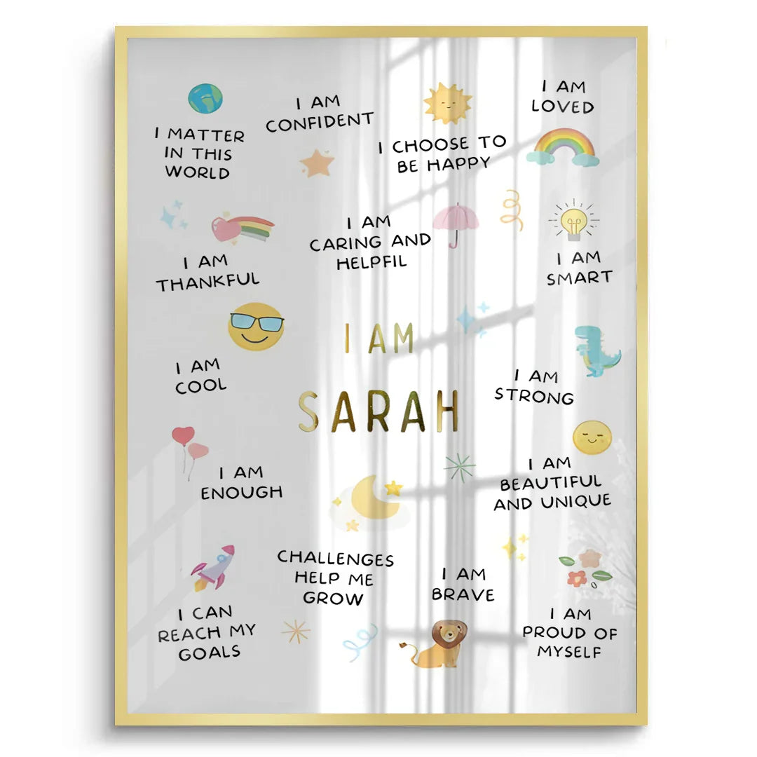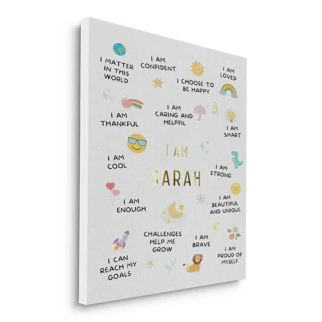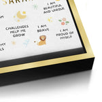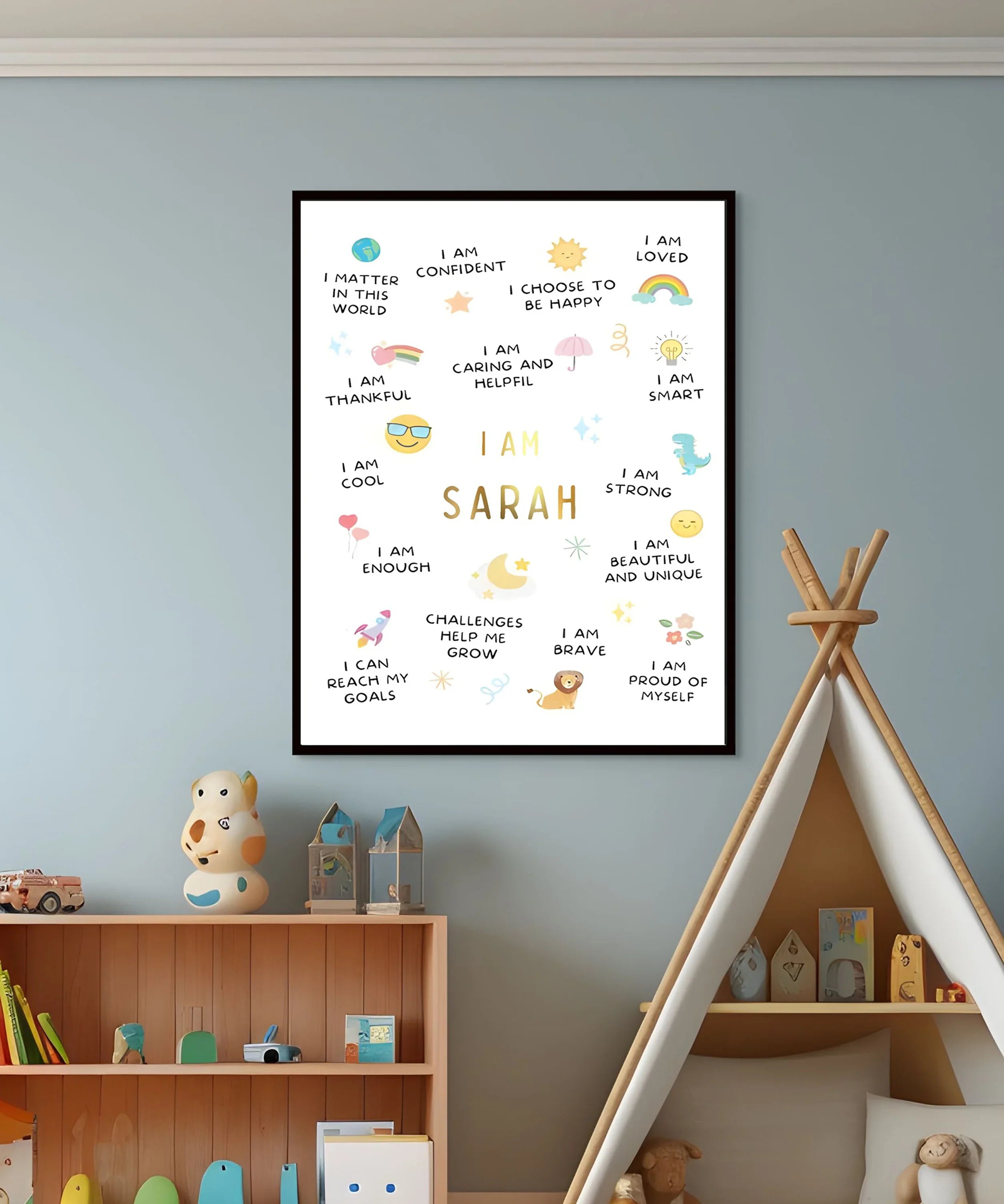 Elevate any room with this Customizable Kids Affirmation Wall Art, adorned with real gold leaf foil and uplifting affirmations. Personalize it with your child’s name to create a meaningful and inspiring piece they’ll cherish.