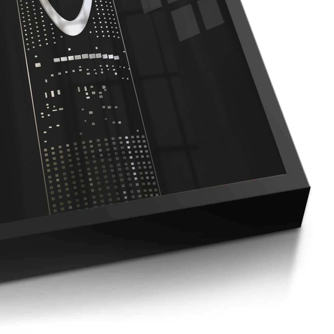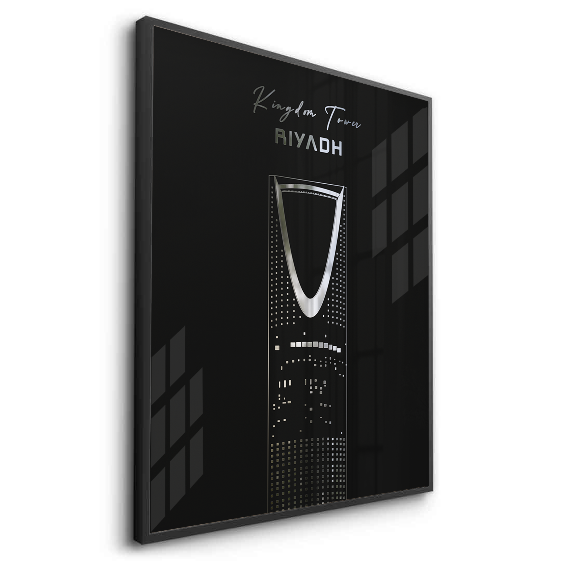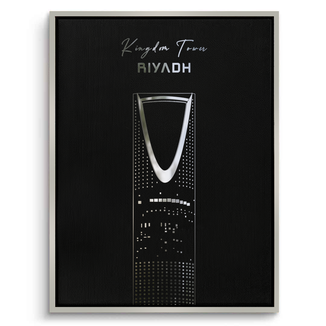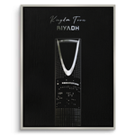 Featuring the renowned Kingdom Tower in silver foil, this artwork highlights Riyadh’s architectural brilliance. With its bold symmetry and luminous design, it enhances living rooms, offices, or contemporary spaces with a touch of Saudi sophistication.