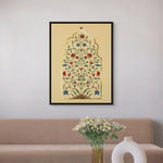 A graceful ode to Mughal artistry, this floral arch bursts with ornate detailing across a warm beige backdrop. Zarqash, meaning fine ornamentation, reflects the intricate patterns and rich heritage captured in this timeless design.