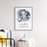 A dreamy space-themed artwork featuring your child as the star astronaut, surrounded by planets, stars, and adventure. Customised with their name in silver foil, it’s a perfect fit for nurseries, playrooms, or kids’ bedrooms.