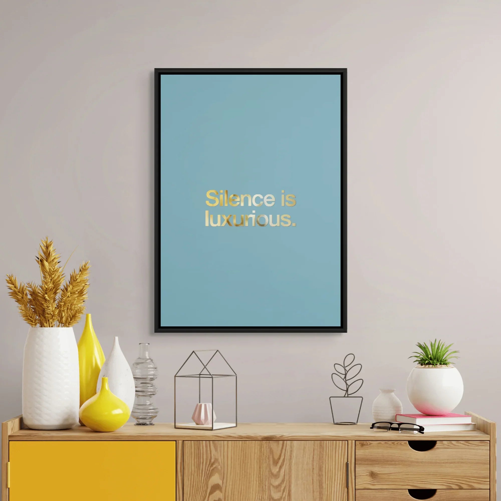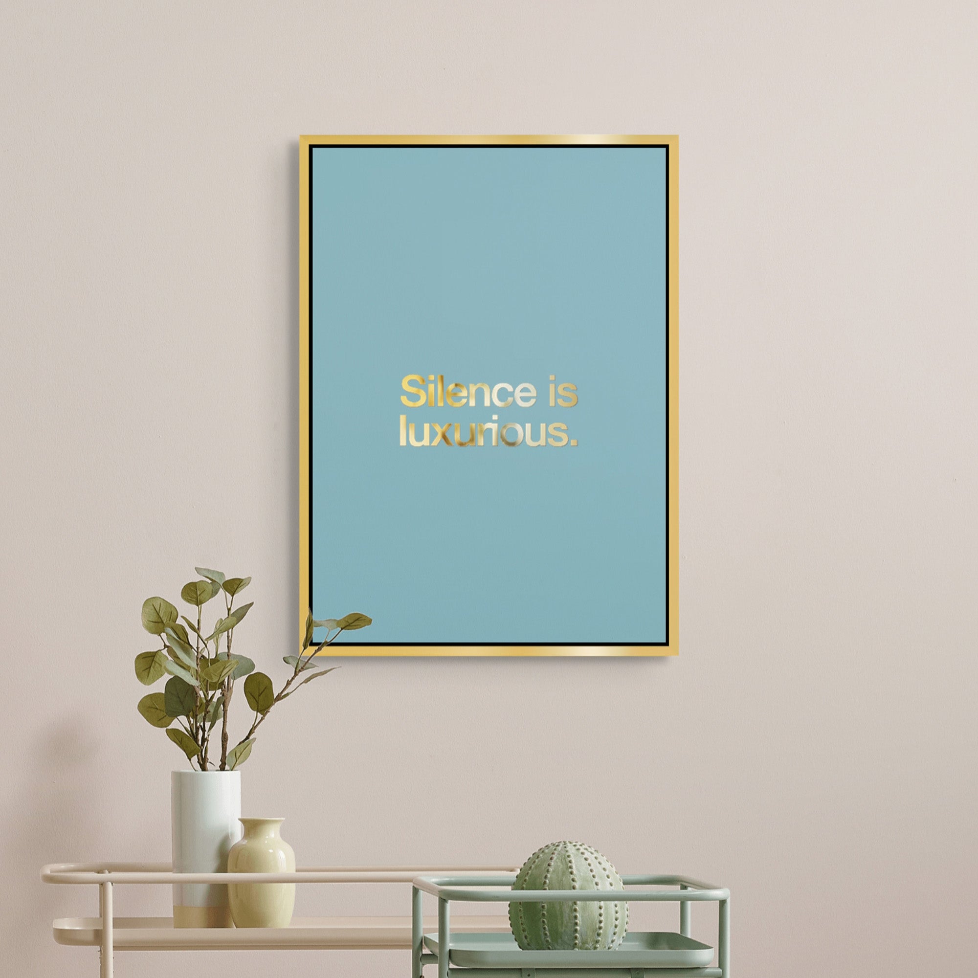 This artwork is made for moments that don’t need noise. Featuring soft gold foiled type on a serene blue base, it’s perfect for bedrooms, reading corners, meditation spaces, or anywhere peace is the main aesthetic.