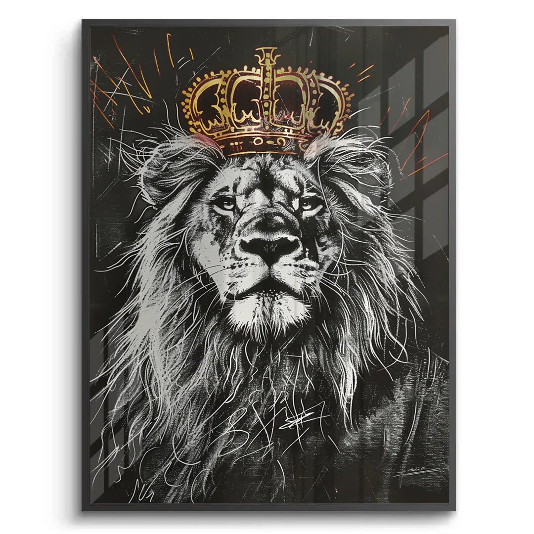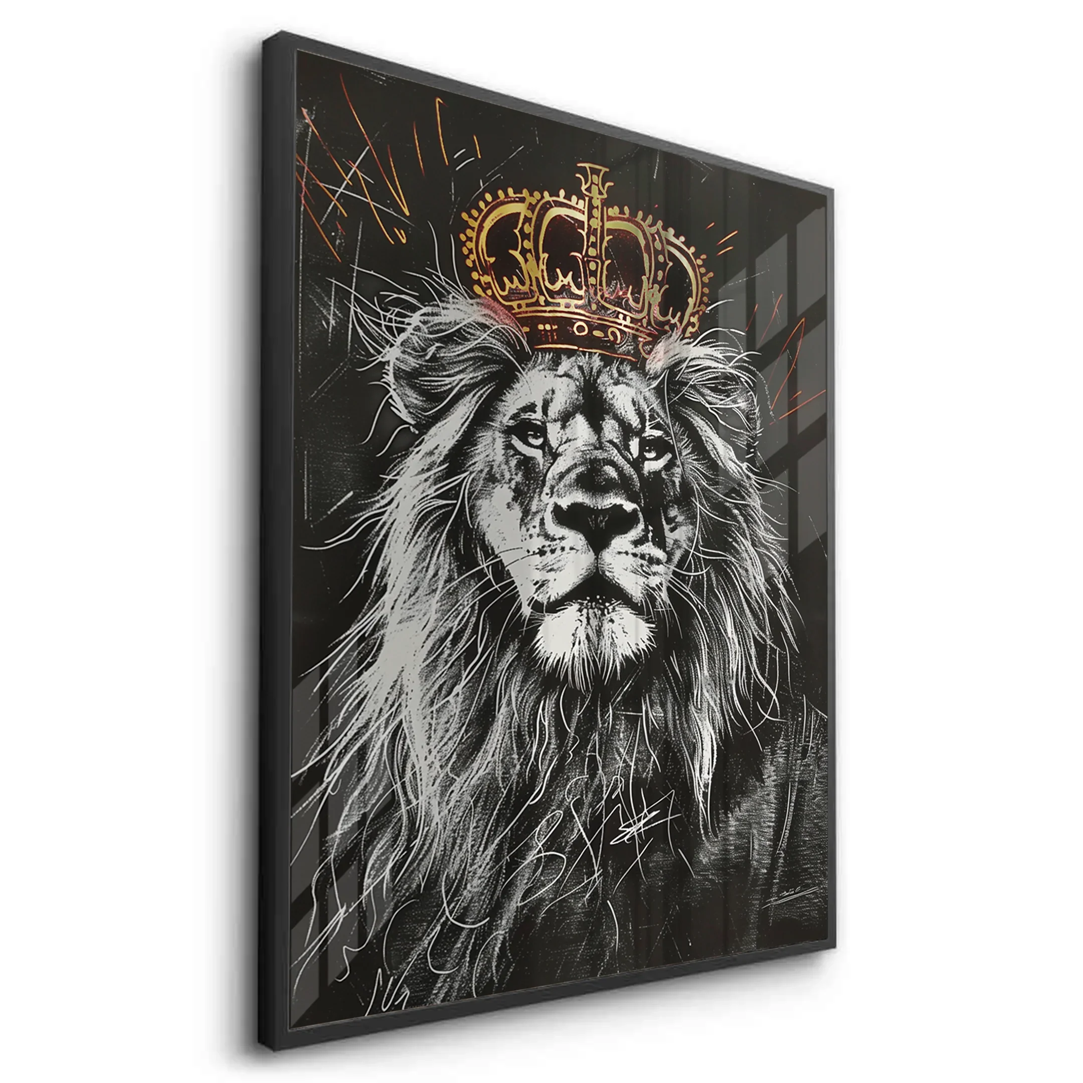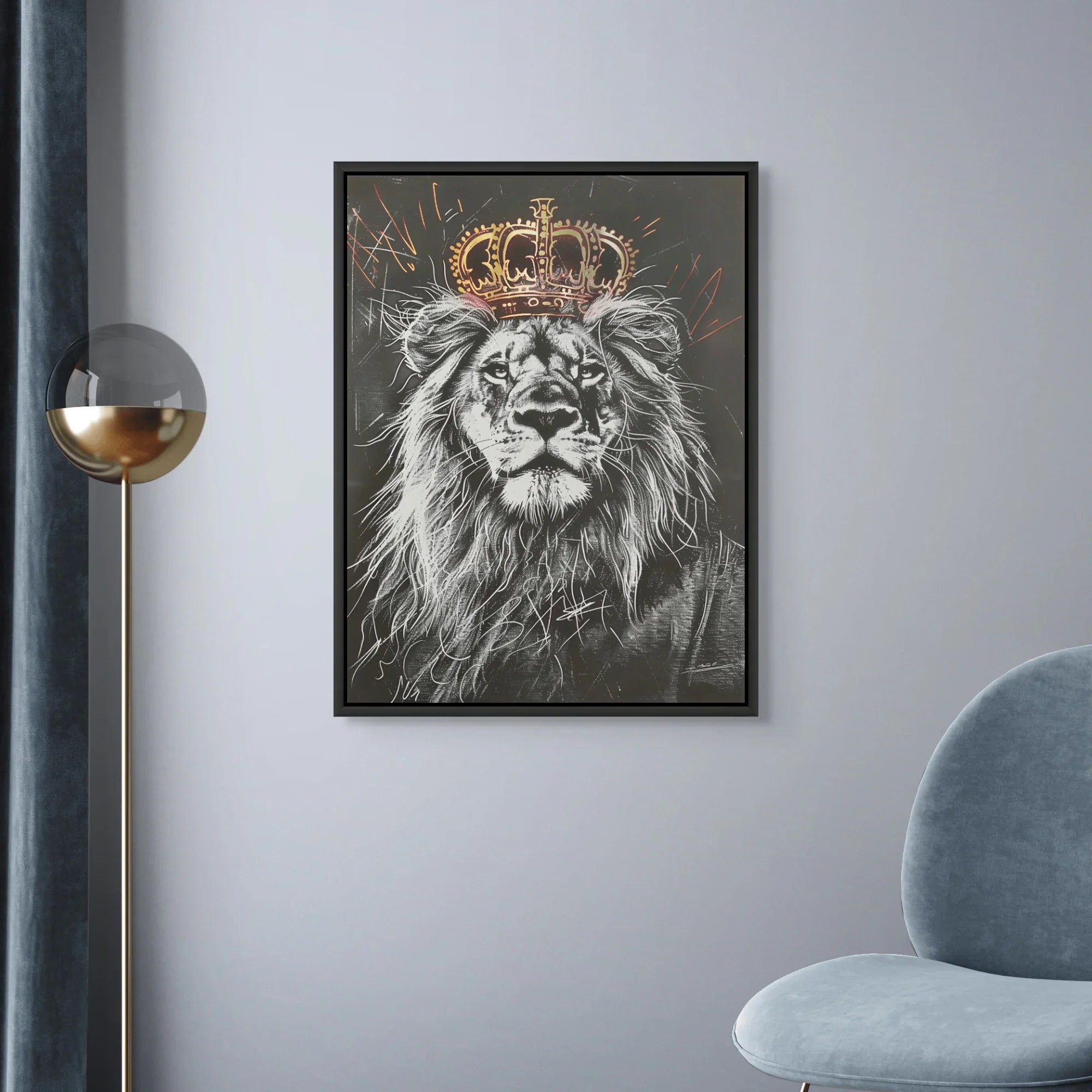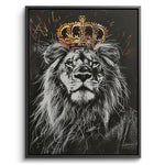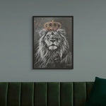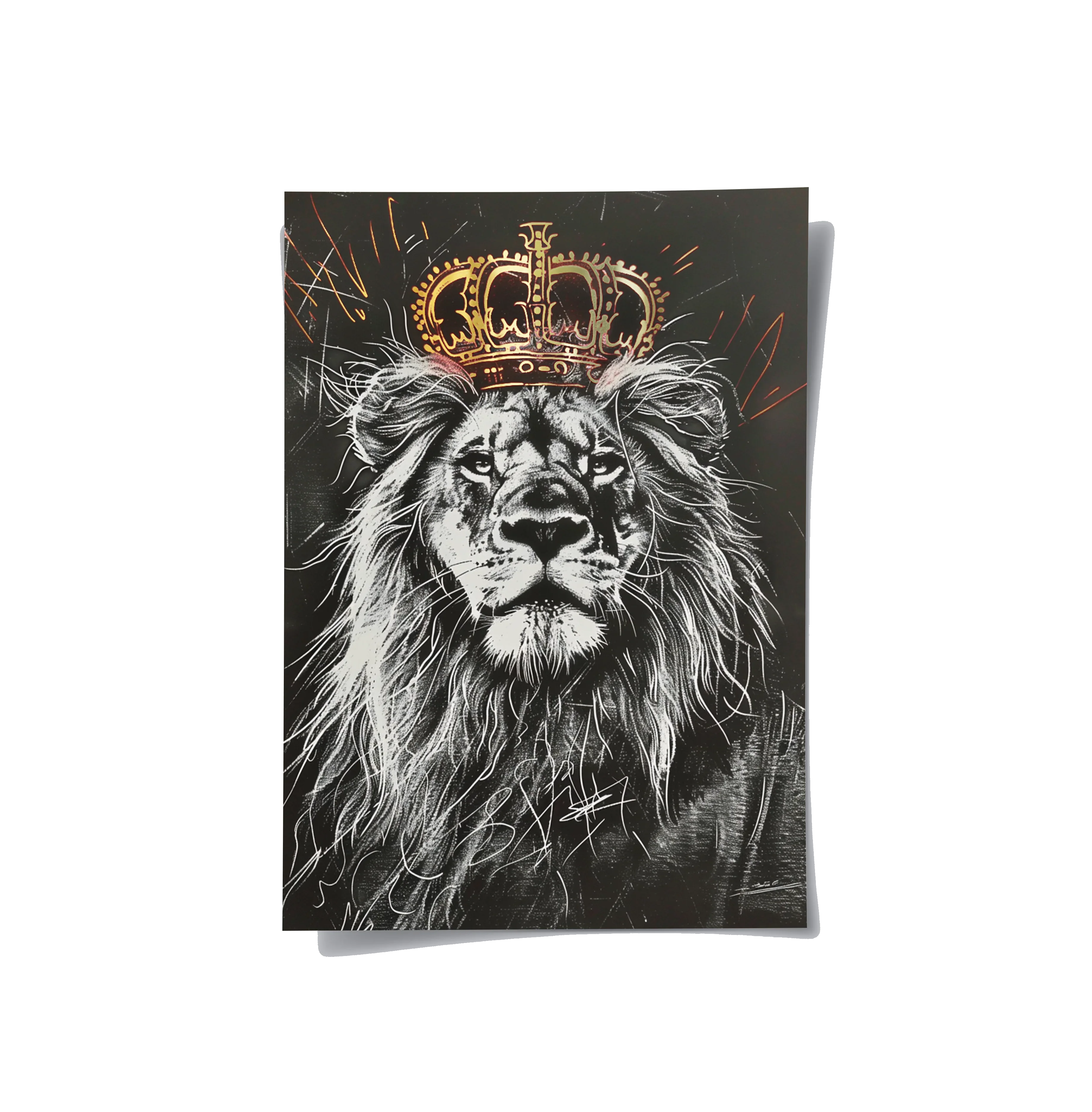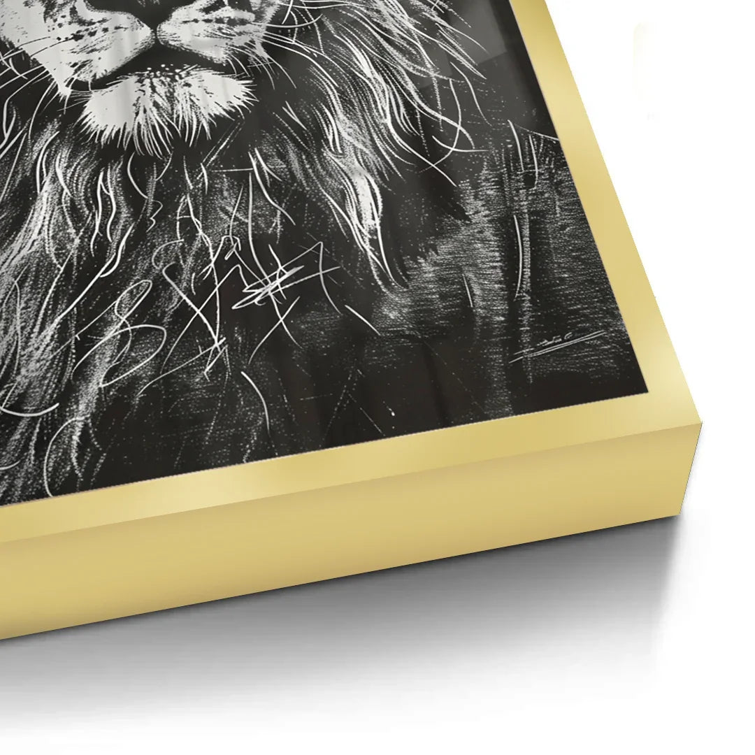 A commanding lion sketch crowned in glinting gold stands out against a jet-black backdrop. Perfect for statement walls, this artwork radiates strength, confidence, and edge—ideal for masculine dens, modern living rooms, or bold hallway displays.