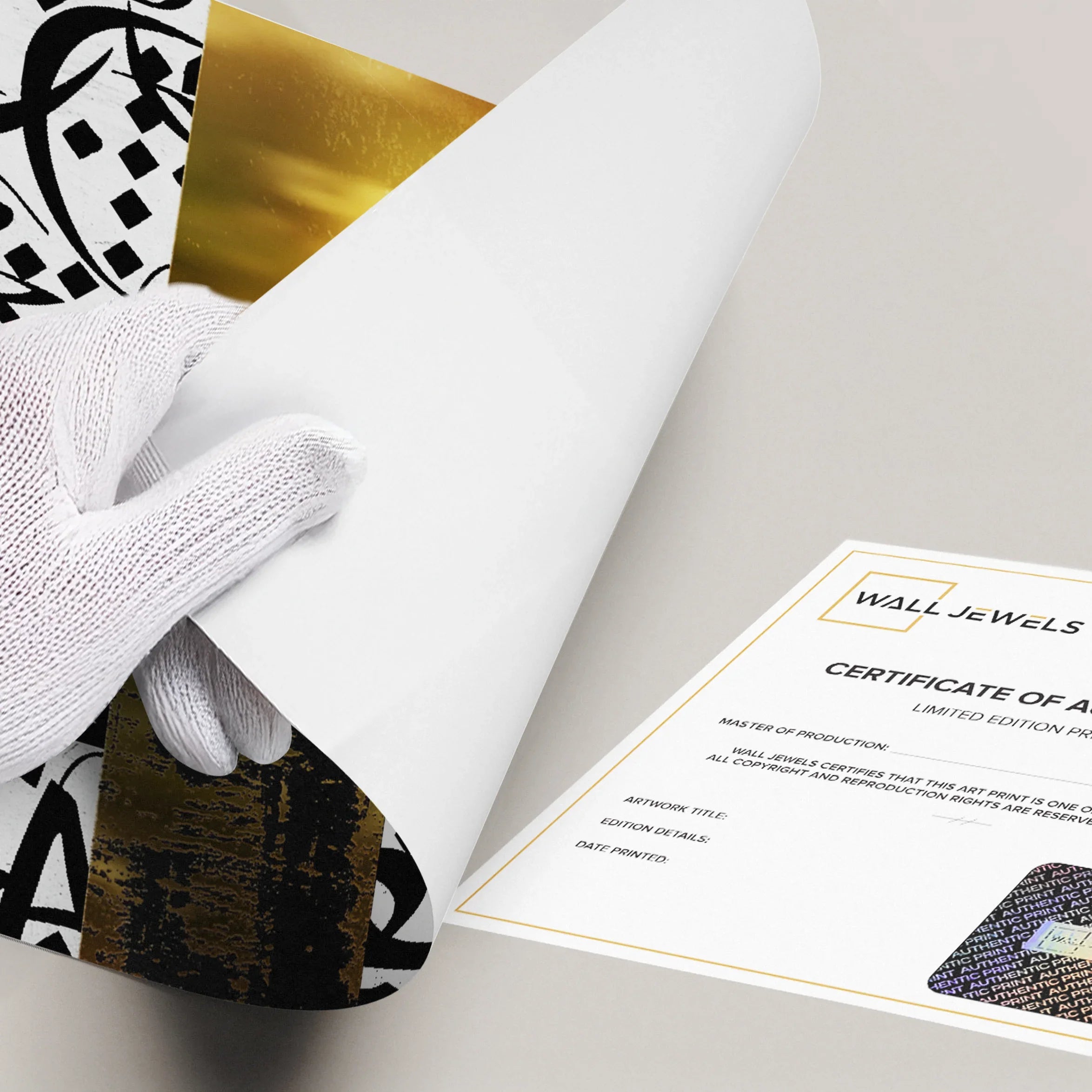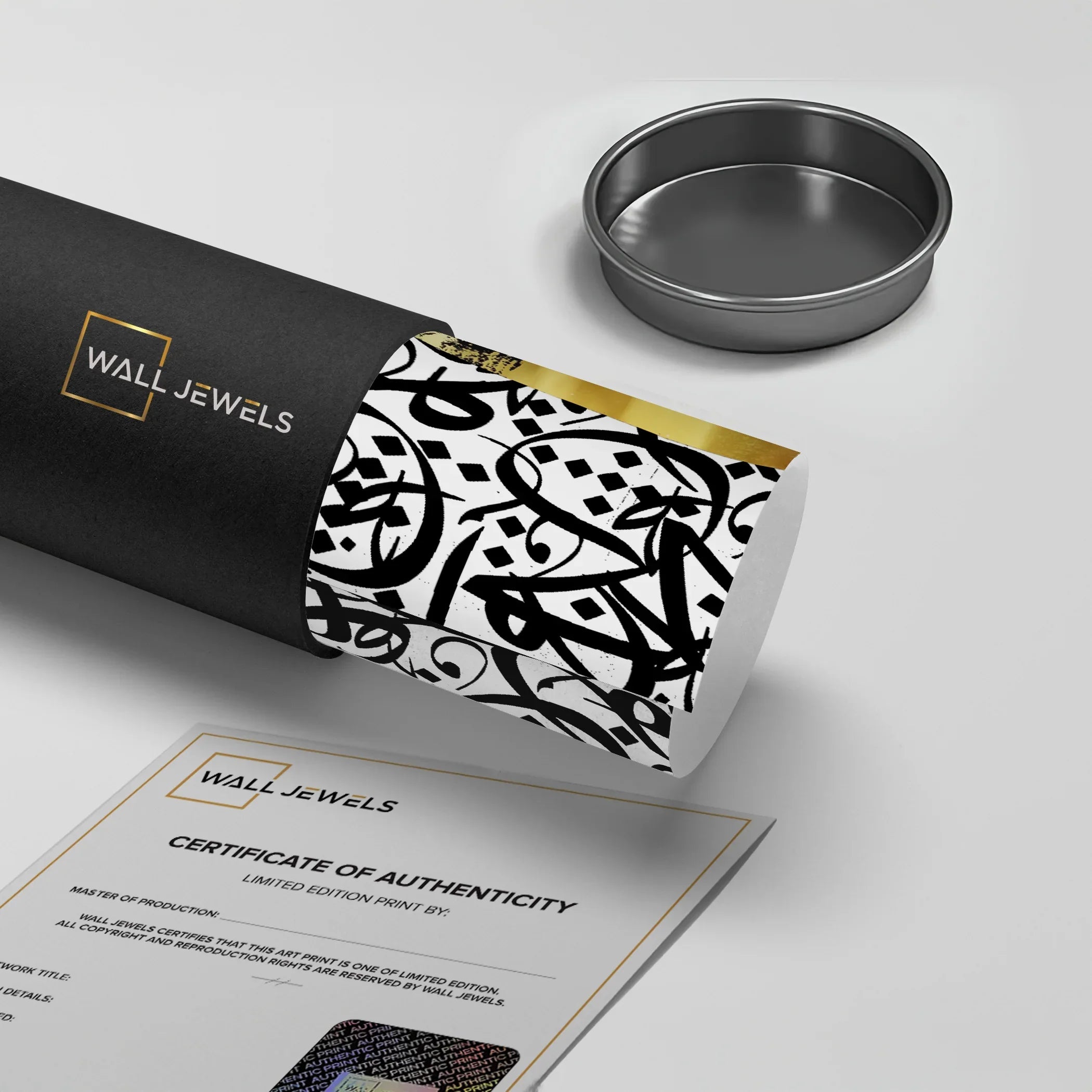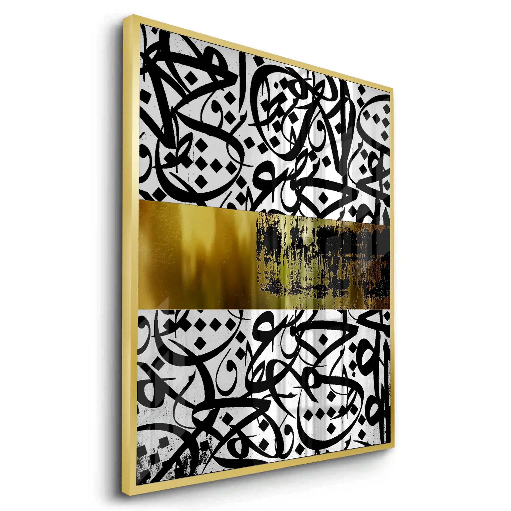 This artwork blends Thuluth Arabic calligraphy with abstract geometry and distressed gold. Gritty yet graceful, the composition weaves tradition and rebellion into bold rhythm. Perfect for statement walls in living rooms, hallways, or offices.
