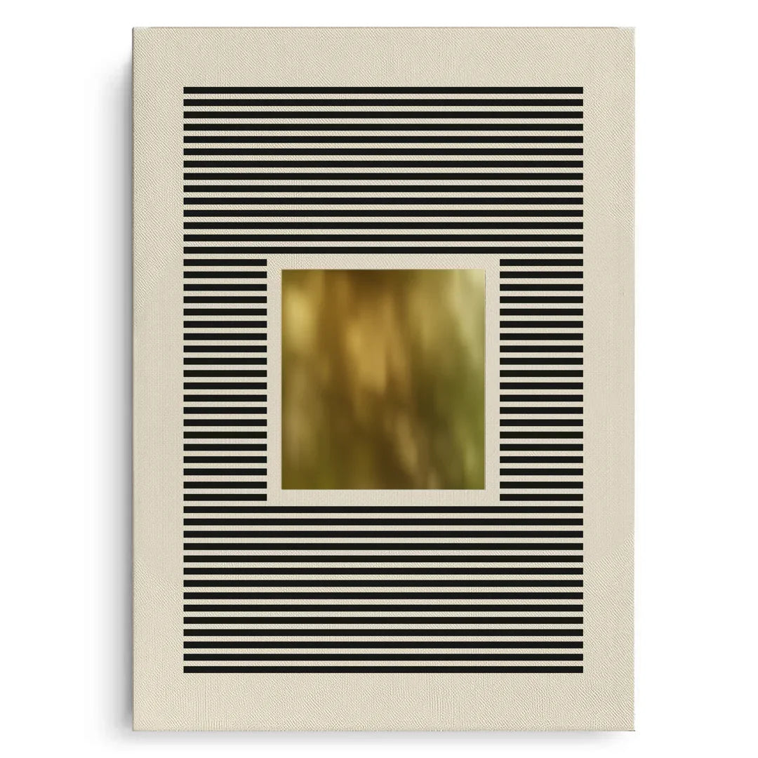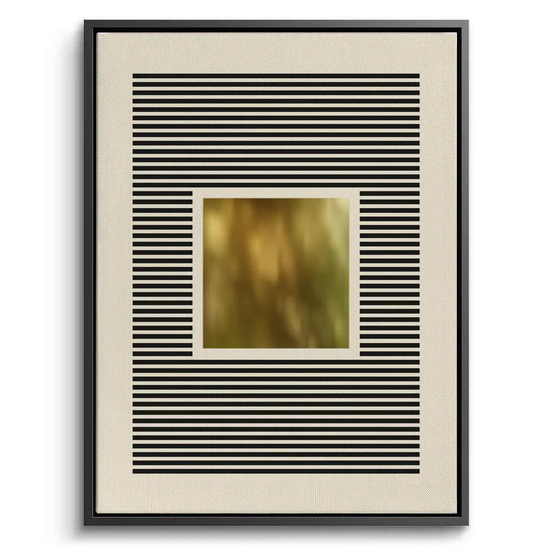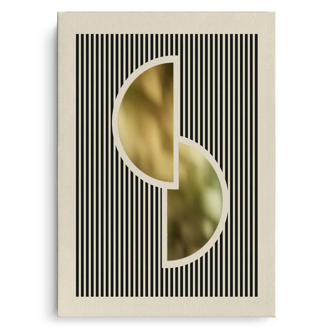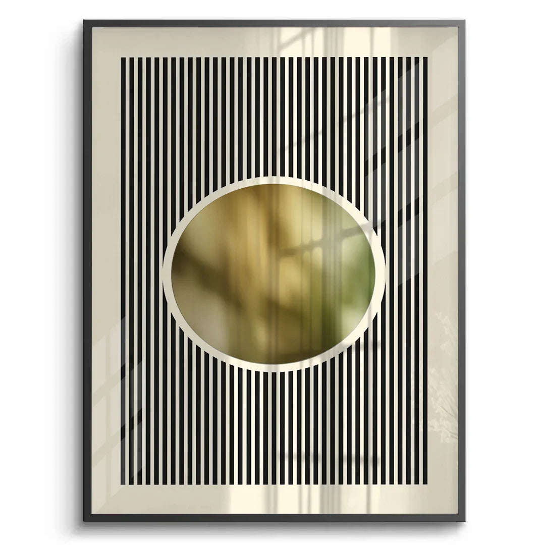 Bold black lines and structured forms contrast with a warm beige base, anchored by a gold-foiled centerpiece. This artwork adds rhythm and elegance—perfect for modern spaces seeking a clean, minimal look with a luxurious graphic accent.