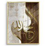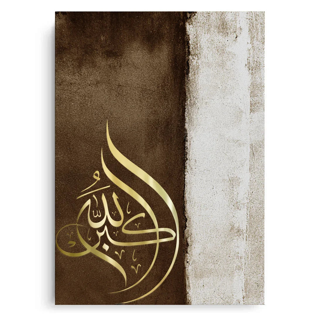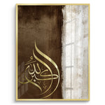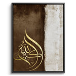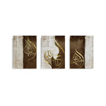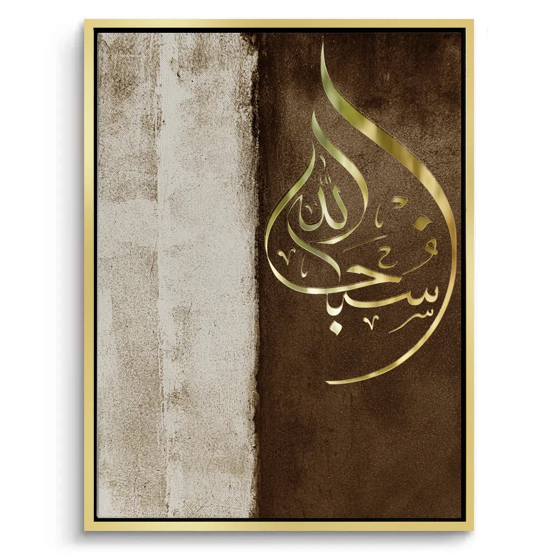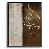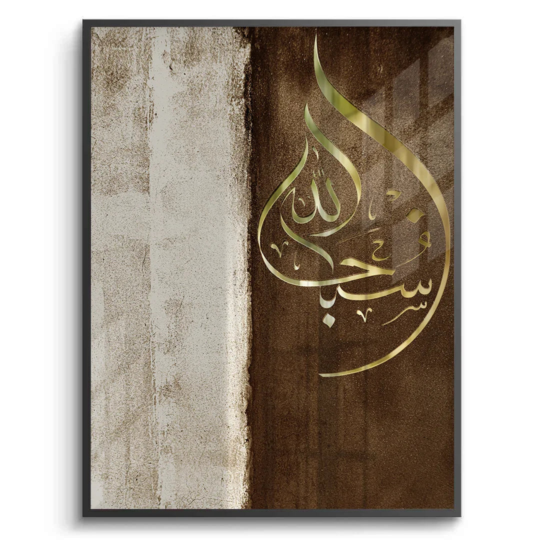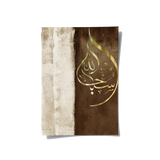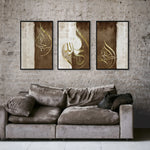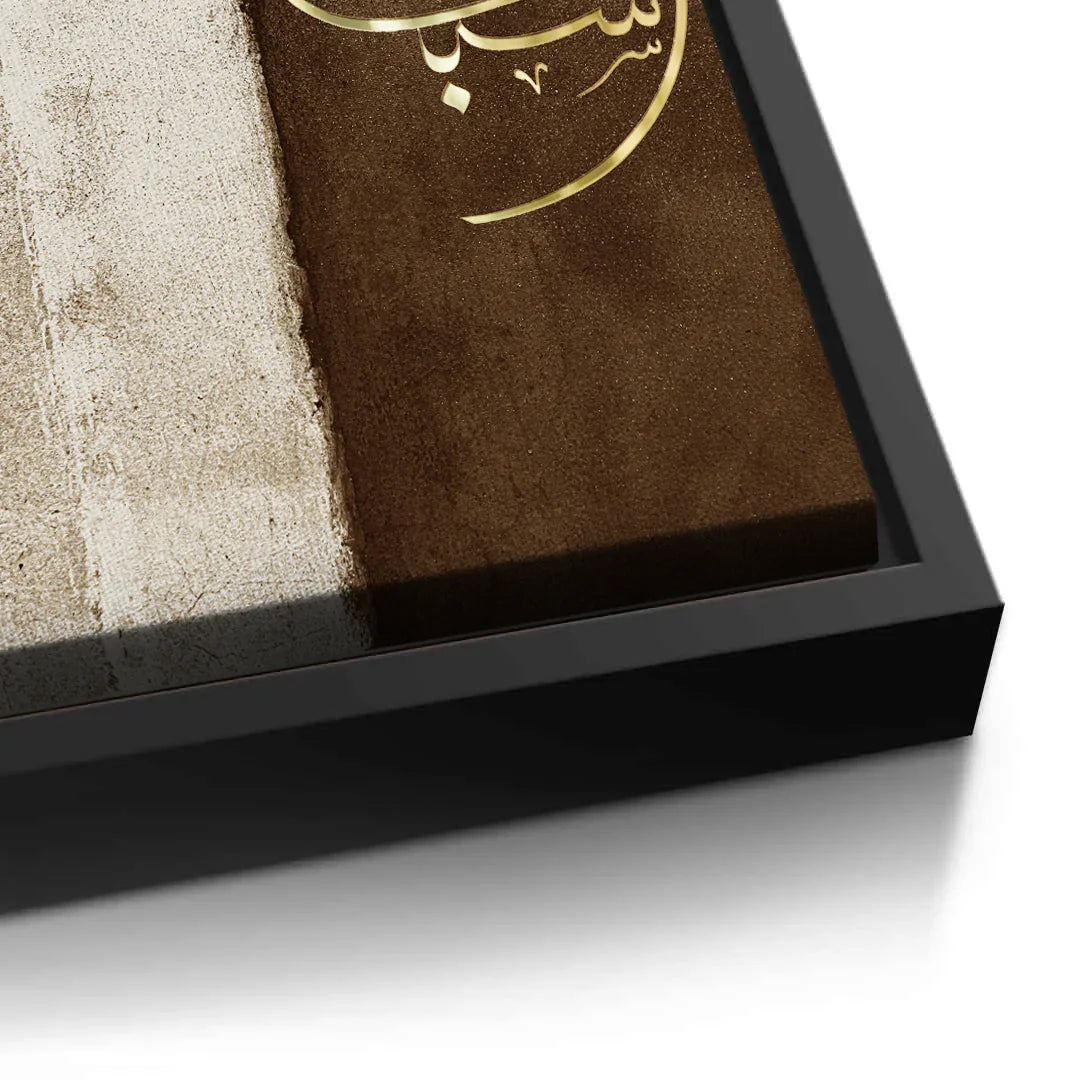 A timeless set of SubhanAllah, Alhamdulillah, and Allahu Akbar in graceful gold foiled Arabic calligraphy. Rich brown tones blend into textured beige, creating a warm, earthy finish. Perfect for living rooms, bedrooms, or prayer nooks.