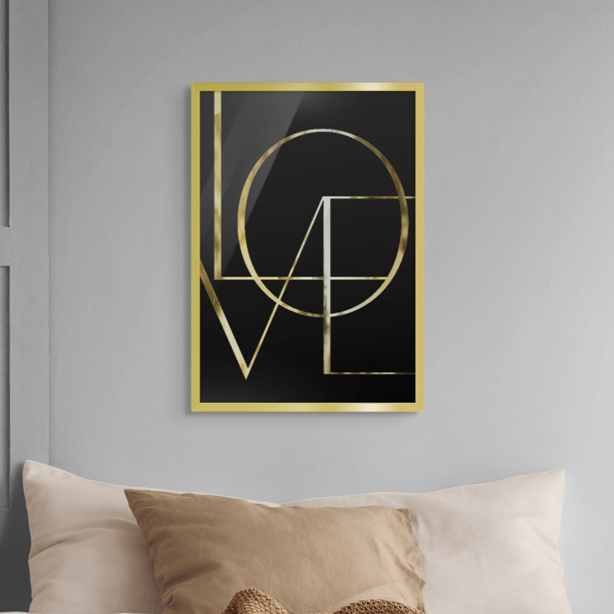 This artwork redefines LOVE through bold geometry and creative typography, finished in radiant gold foil. Striking yet refined, it suits bedrooms, studios, entryways, or curated spaces that celebrate emotion with modern visual language.